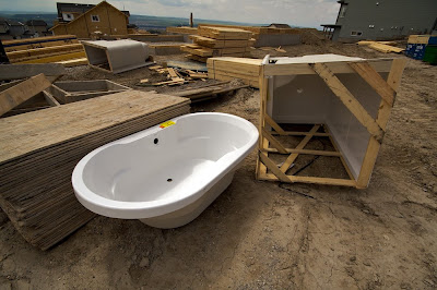 Also both baths are in and in the master bathroom the shower is up too. Venting ducts are installed and the laundry room has 2 water mains and a drainage.